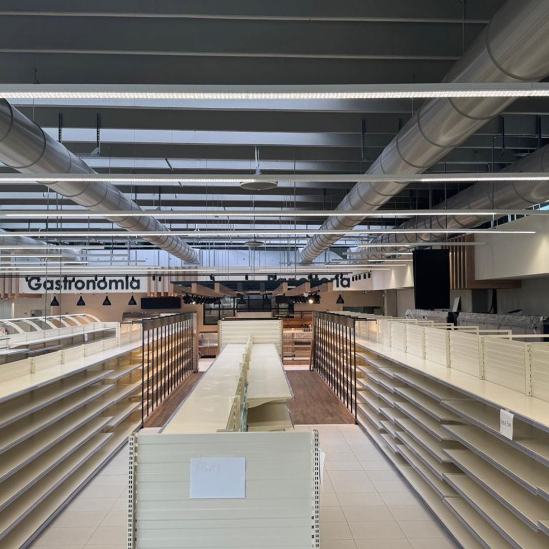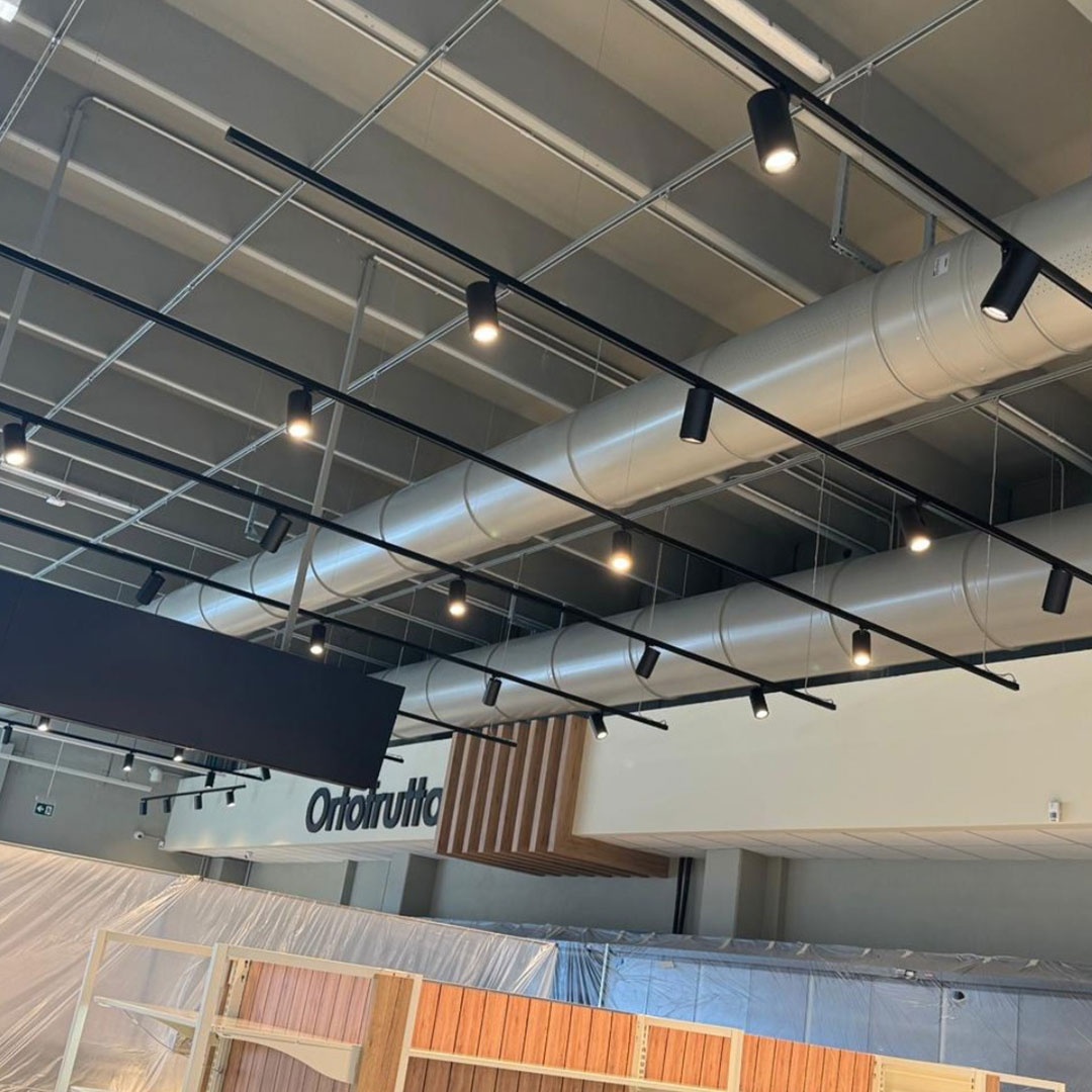 Realizzazione nuovo impianto elettrico ed istallazioni corpi illuminanti per il nuovo supermercato di Cesenatico.